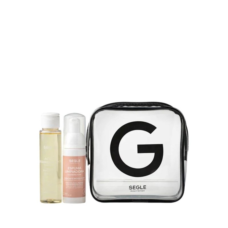 El Pack Doble Limpieza Viaje de SEGLE ofrece una rutina completa y compacta: un aceite desmaquillante nutritivo con escualano y extractos botánicos, seguido de una espuma antipolución con hidración (ácido hialurónico, pantenol, bisabolol) y escudo contra contaminantes urbanos. Ideal para todos los tipos de piel y situaciones urbanas exigentes