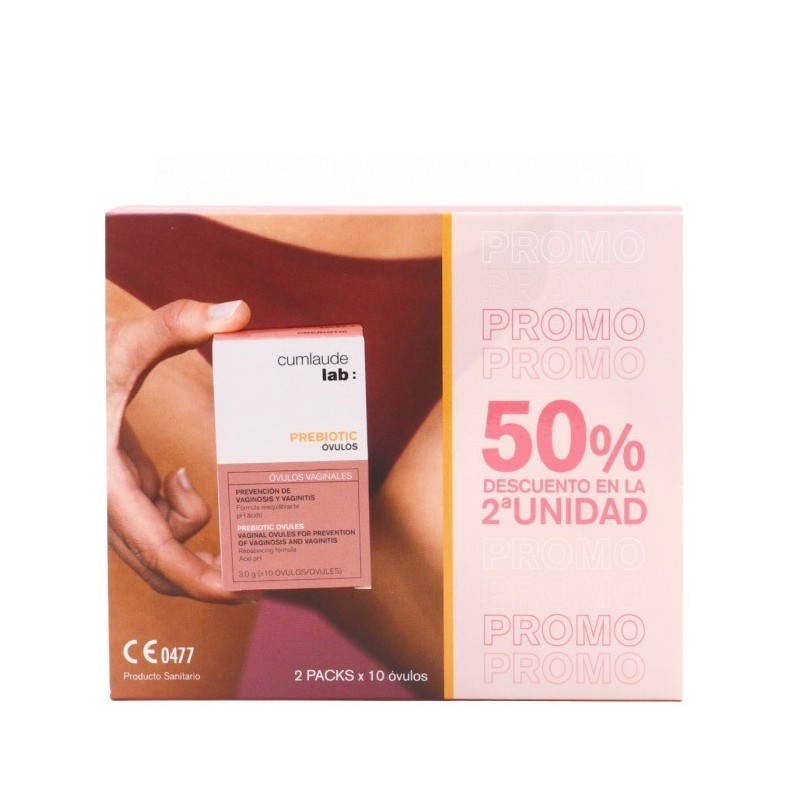 Prebiotic óvulos vaginales cumlaude, es un tratamiento desarrollado por cumlaude lab indicado para prevenir la vaginosis bacteriana y la vaginitis micótica recurrentes. Este producto sanitario está formulado específicamente para restablecer el equilibrio de la microbiota vaginal y normalizar el ph vaginal, lo cual resulta clave para evitar infecciones y molestias comunes en la zona íntima. Cumlaude prebiotic óvulos vaginales 10 x 2 promo duplo 50% de descuento en la 2ªunidad.