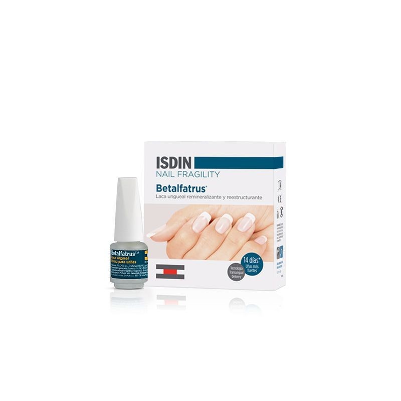 Isdin Betalfatrus Laca Ungueal reduce significativamente la fragilidad y las grietas ungueales por su contenido en Equisetum Arvense (cola de caballo), fuente de sílice orgánico-mineral.